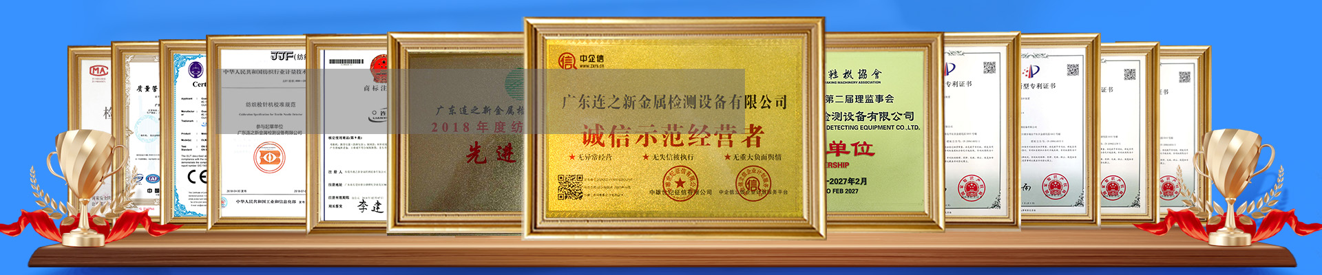 廣東連之新金屬檢測設(shè)備有限公司成立于2006年,是一家長期致力于金屬探測技術(shù)領(lǐng)域金屬探測儀器設(shè)備等專業(yè)研發(fā)、生產(chǎn)、銷售的科技型企業(yè)。擁有自主品牌:連新牌(商標(biāo)注冊號5999209)及多項發(fā)明專利,擁有CE等多種產(chǎn)品類證書,是國家紡織檢針機校準(zhǔn)規(guī)范JJF(紡織)080-2018起草單位。
